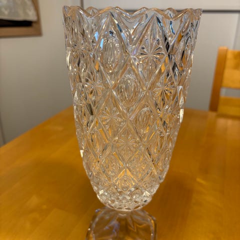 lasimaljakko kirkasta lasia. Korkea, sylinterinmuotoinen malli, jossa koristeellinen kohokuviointi maljakon alaosassa. Sopii esimerkiksi leikkokukille tai sisustuselementiksi pöydälle tai hyllylle. Väri kirkas, materiaali lasi.