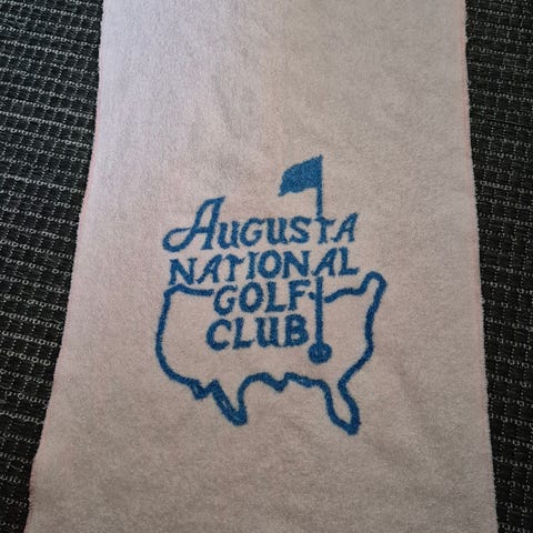 Myydään kuvan mukainen tummansininen golfpyyhe Helsingin Golfklubin logolla.