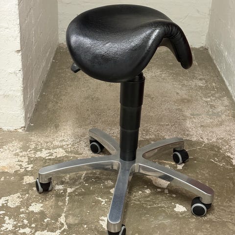 Myydään pois musta satulatuoli, joka jäämässä tarpeettomaksi muuton vuoksi. Merkki ei tiedossa. Tuoli on melko hyväkuntoinen, mutta pientä käytön jälkeä näkyy istuimessa, jonka näkee myös liitteenä olevasta tarkemmasta kuvasta. Istuinkorkeutta voi säätää vivusta. Nouto Helsingin Konalasta tai 25.4. eteenpäin Vantaan Kaivokselasta.