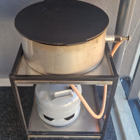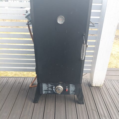 Myydään vanhempien puolesta savustin. Toimii kaasulla. Kaksi kertaa kokeiltu, eli on kuin uusi. Bbq king merkkinen. Sisäpuolella useita irrotettavia ritilätasoja ja tippa-astia. Alaosassa kaasupoltin, säätönuppi ja sytytys. Soveltuu erilaisten lihojen, kalojen ja muiden ruokien savustamiseen kaasulla toimivassa savustimessa.