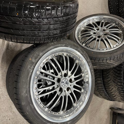 Aluvanteet 8½x18 et:42 keskireikä 63,4 sovitteella ja kesärenkaat josta 2 kpl uusia ja 2 kpl lähes uusia.