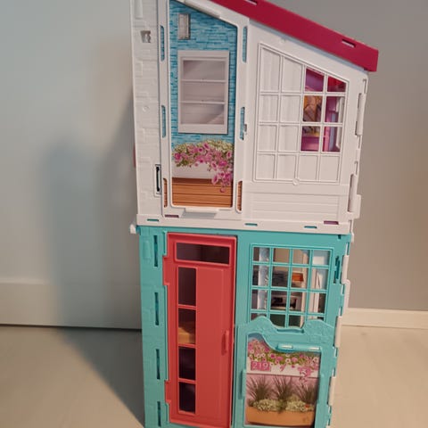 Myydään kokoontaittuva Barbietalo. Mukana tuolit, Barbie nukke ja pieniä osia. Koiratalous, Hartikkala/Lpr