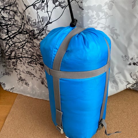 Buberg Sleepingbag Blanket -makuupussi. Malli on peitetyyppinen makuupussi, jonka ulkopinta on harmaa ja sisäpinta vaaleansininen. Makuupussi pakkaantuu pieneen kuljetuspussiin kiristysnyörillä. Sopii yleiseen retkeilyyn ja yöpymiseen sisä- ja ulkokäytössä lämpimissä olosuhteissa.