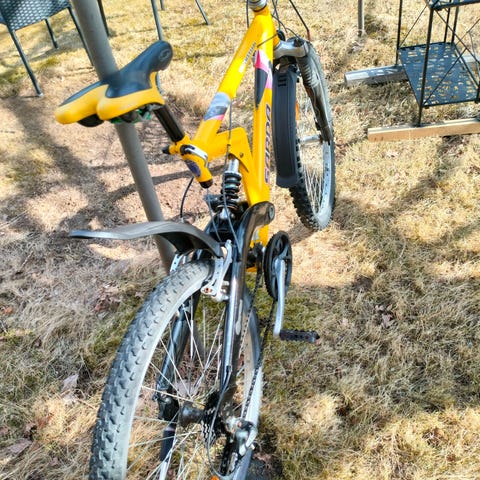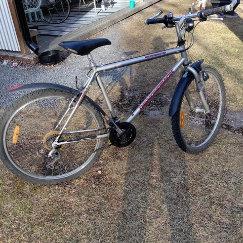 Ok kuntoinen maastopyörä. Käytön jälkiä on mutta toimiva. Renkaat ehjät, ilma pysyy, Kaksoisjousitettu, 21-vaihteinen