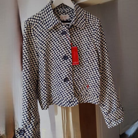 Heräteostoksena lopputalven alennusmyynnistä ostettu Isay merkin Como printed, pantterikuvioinen, farkkutakki -tyylinen puuvillainen jakku, takki. Vain sovitettu sisällä. Jäänyt kaappiin. Jakku yhä myynnissä heidän verkkokaupassaan
