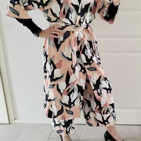Aarre merkkinen hame koko S - sivulla taskut, joustovyötärö, kaunis kuvio/ väritys,