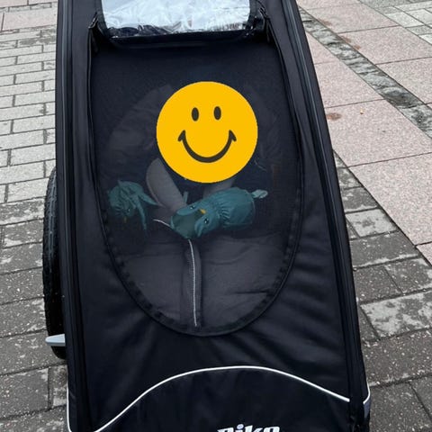 vuonna 2021 ostettu querido sportrex2 lasten pyöräkärry kahdelle lapselle. Muutaman vuoden ollut käytössä.