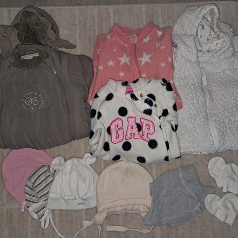 16 kpl erilaisia haalareita/yöpaitoja tytölle,kaikki koossa 56 cm.