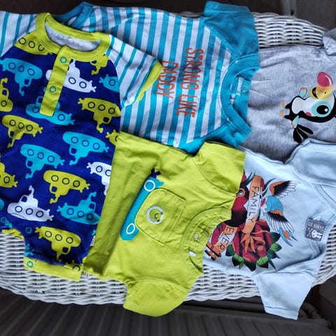 22 kpl erilaisia housuja vauvalle,kaikki kokoa 56 cm. Parit sukat ja yhdet tossut mukana myös.