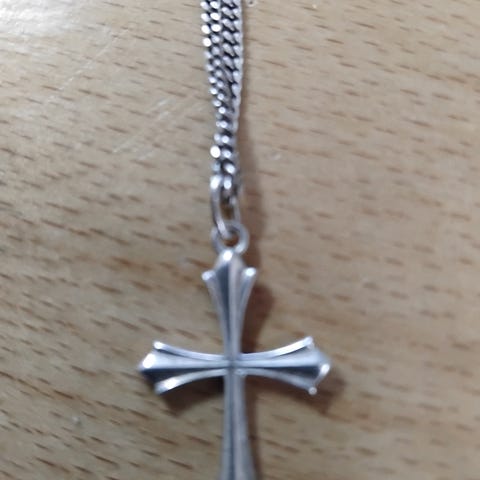 Hopeinen risti (925) ja ketju (925). Sopii vaikka rippilahjaksi. Lahjarasiassa. Myydään Toridiilinä.