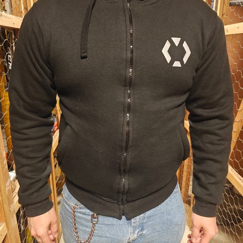 -hupparissa kyynär- ja olkapääsuojat, paikka selkäpanssarille sekä 100% kevlarvuoraus