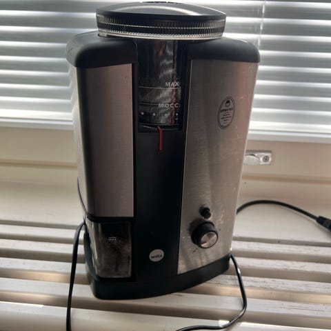 Wilfa CGWS-130B kahvimylly kotikäyttöön. Sähkökäyttöinen mylly, teho 130 W (230 V, 50 Hz). Laitteessa on papusäiliö ylhäällä ja irrotettava säiliö jauhetulle kahville sivussa. Jauhatuskarkeutta voidaan säätää säätörenkaasta. Väri musta. Soveltuu kokonaisien kahvipapujen jauhamiseen eri valmistusmenetelmiä varten.