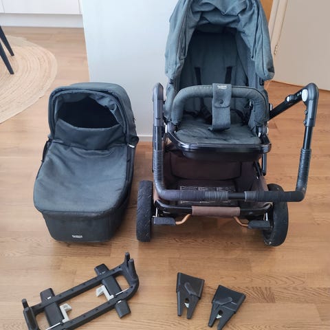 Myydään seuraavalle pienokaiselle yhdistelmävaunut vaunukopalla, ratasosalla ja turvakaukalon adaptereilla. Mukaan saa myös rengassuojat, maasto/talvirenkaat ja sadesuojan.