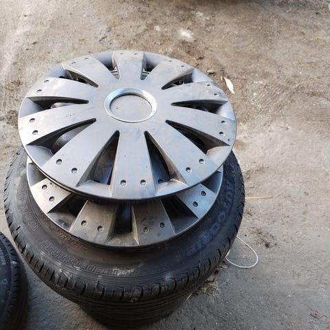 Corolla vanteet 4x100 Nordman-e kumeilla pintaa 3.5-4.5mm 155/80-13 vaikka peräkärryyn
