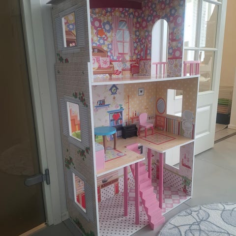 Puusepän tekemä iso nukkekoti