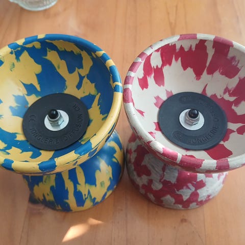 Myydään ammattitasoinen Diabolo setti. Kolme laadukasta sekä korkea luokkaista Finesse Diaboloa sekä kolmet eri Hiilikuitu/lasikuitu kepit. Kahdet lyhyet (musta + Valkoinen, hiilikuitu) sekä pitkät kepit (Valkoinen, lasikuitu). Diabolot ovet usean vuoden vanhat. Viime vuodet ovat seisoneet kaapissa käyttämättöminä. Laitoin kunnoksi kohtalainen kulumis jälkien takia, mutta kaikki pelaa normaalisti, eikä isoja lohkeemia yms ole. Ja tulevat varmasti toimimaan vielä useita vuosia. Myydään tarpeettomana pois koko setti.