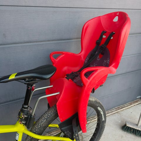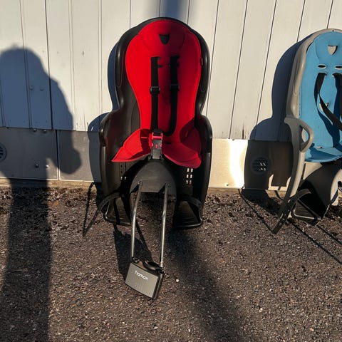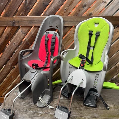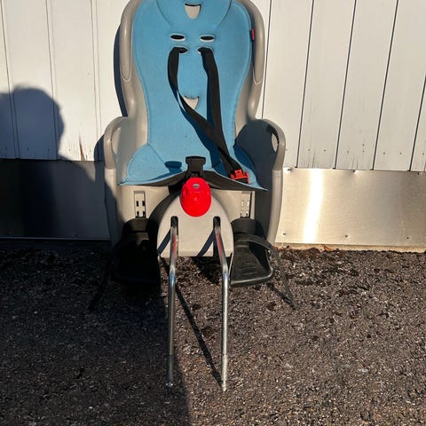 Hamax lasten polkupyöränistuin, kantavuus noin 15 kg. Kiinnitetään polkupyörän runkoon.