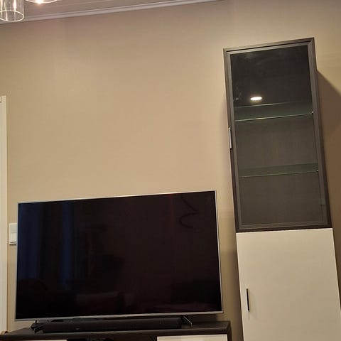 Sama sarjaa oleva kolmeosainen massiivipuinen huonekalukokonaisuus. Sisältää vitriinin, sohvapöydän ja TV-tason. Myydään ensisijaisesti kaikki kerralla yhteishintaan.
