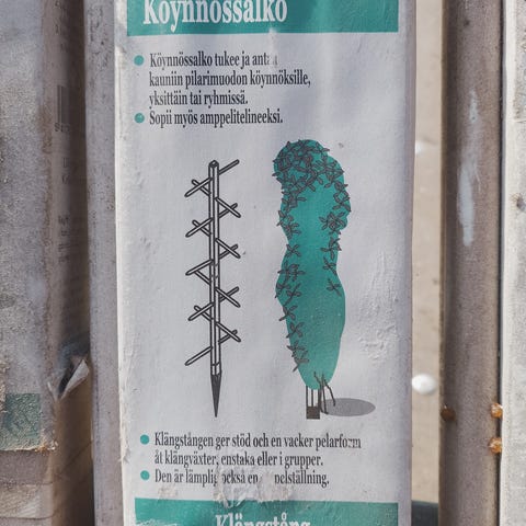 Olisi tarvetta metalliselle köynnöstuelle, joka riittävän korkea eli noin 2 m.