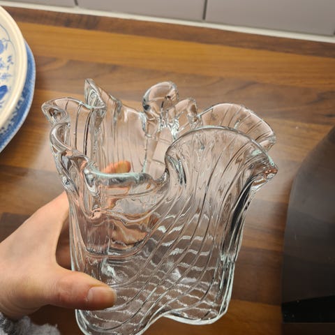 Muurlan valmistama kaunis Evita-lasimaljakko. Siisti ja ehjä, design Tauno Wirkkala. Korkeus noin 15,5 cm. Vain nouto, posti kun rikkoo nämä. Katso myös muut myyntiartikkelini!