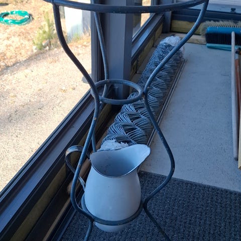 Materiaali: Kirkas lasi, jossa on viiniköynnöskuvioita, ja musta metalliteline.