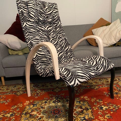 Harlekiini-mallin nojatuoli ja rahi