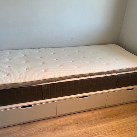 Myyntiin lapsen käytössä ollut Nordli sänky, patja ja patjansuojus.