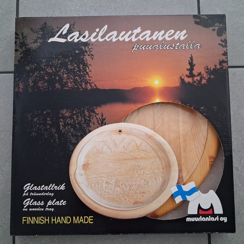 Muurla lasilautanen ja puualusta