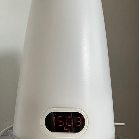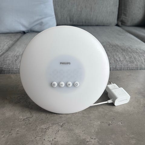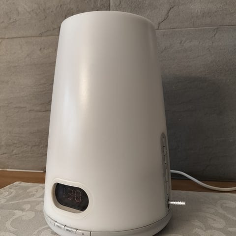 Philips HF3500 herätysvalo, jossa on digitaalinen kellonäyttö ja herätystoiminto. Laitteessa on valon kirkkauden säätöpainikkeet sekä erillinen herätyspainike. Toimii verkkovirralla (15 W). Soveltuu käytettäväksi herätyskellona ja valonlähteenä makuuhuoneessa tai muussa sisätilassa.