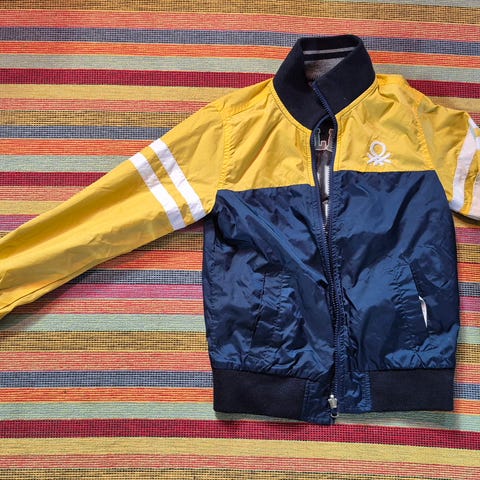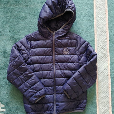 Benetton lasten takki, koko 140. Poikien takki sinisessä värissä. Valmistettu polyesteristä, verkkovuori sisäpuolella. Edessä vetoketju, sivuilla vetoketjulliset taskut ja korkea kaulus. Hihansuissa ja helmassa joustavat resorit. Sopii arki- ja ulkokäyttöön lapsille noin koossa 140.