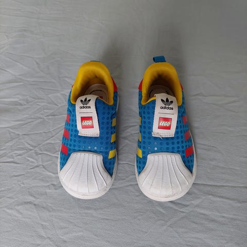 Adidas lasten tennarit, koko 23, unisex-malli. Super star tarroilla. Hyvin säästeliäästä kauppareissuilla lähinnä käytetty.