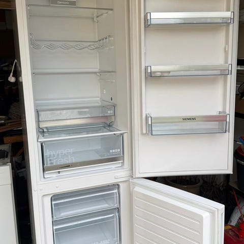Iso Siemens jääkaappi-pakastin, värinä ruostumaton teräs. Laitteiden kunto hyvä ja saivat väistyä uusien tieltä. Jääkaappi ja pakastin pesty sisältä ja ulkoa. Näillä on ikää max. 17 vuotta.
