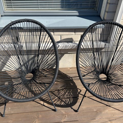 Kaunis rustiikkinen “Peacock Feather” -tyylinen kalustesetti puutarhaan, terassille tai parvekkeelle.