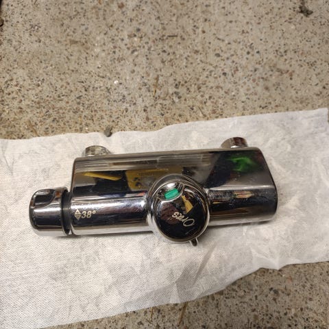 Kromi suihkuhana, jossa yksi vipuvedin lämpötilan ja veden määrän säätöön. Mukana tulevat asennukseen tarvittavat kromatut peitelaipat ja liittimet. Saa kysyä ja tarjota :)
