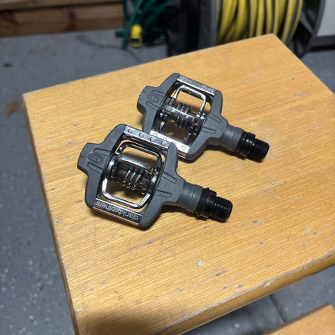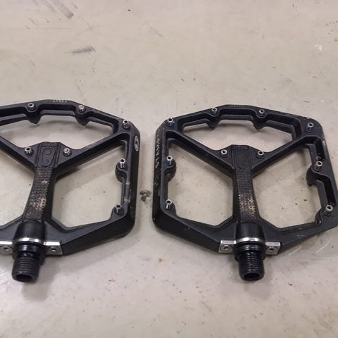 Lukoilla polkeminen ei ihan maistunut, joten tästä seuraavalle loistavat polkimet. Itse ajoin näillä vain pari lenkkiä eikä edellinenkään omistaja montaa ehtinyt. Katso kuvat, joitain jälkiä on.