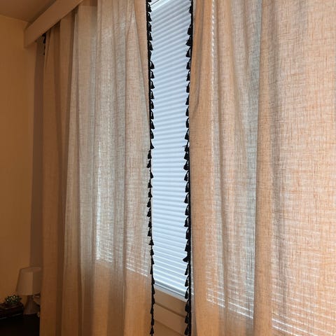 Kauniit tummansiniset verhot, kuvassa liian tumma väri.