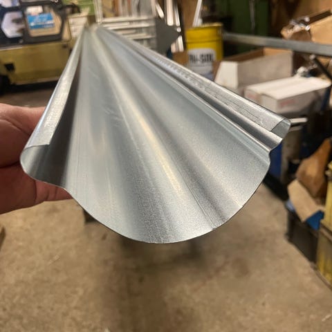 Metallinen sadevesikouru ulkokäyttöön. Kouru soveltuu sade- ja sulamisvesien ohjaamiseen esimerkiksi rakennuksen räystään alta tai muista vedenkeruukohteista. Materiaalina on metalli, ja mukana näkyy kuvia kourun kiinnikkeistä. Pituus7m tarvittaessa lyhennys. Kourut on ollut ulkokäytössä .