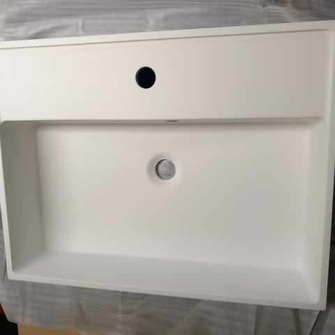 Kaunis kylpyhuonekaluste, valkoinen lavuaari, tummanharmaa taso. Alakaapin ovissa hidastimet. Uusi ja täysin käyttämätön. Mukana vesilukko. Koko: 110 cm x 50 cm x 88 cm.