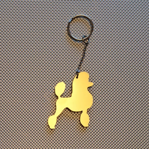 Villakoira-aiheinen avaimenperä kullanväristä akryyliä. Uusi.