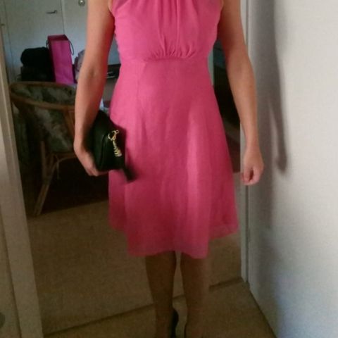 Puolalaisen Entelier-merkin Laurel-silkkimekko. Koko 36/38, vastaa S-kokoa. Todella imerteleva leikkaus, piilovetoketju sivussa, irrallinen vyö ja vuori, joten ei näy läpi.