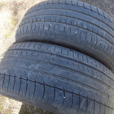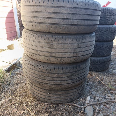 Kesärenkaat, pintaa noin 4,5 mm — riittää yhdeksi kesäkaudeksi.