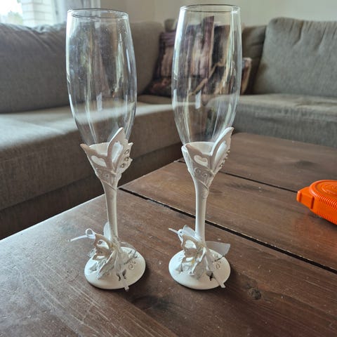 Hääparille tai kihlaparille kuohuviini lasit. Kultajousesta ostettu. Moitteettomassa kunnossa. Laatikko mukaan.