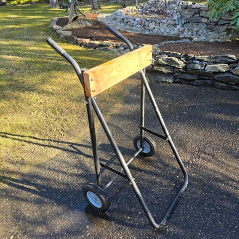 Perämoottorin säilytys/kuljetusteline.