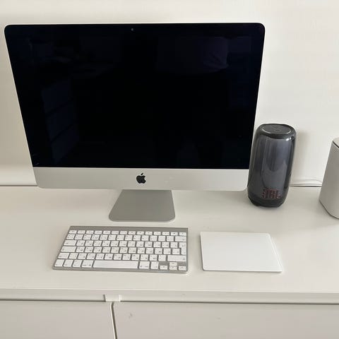 Keskusmuistia 16 Gt 2667 MHz DDR4. Käynnistyslevynä on Macintosh HD. Kotelon väri on hopea ja laite on all-in-one-tyyppinen pöytätietokone, jossa näyttö ja tietokone ovat samassa rungossa.