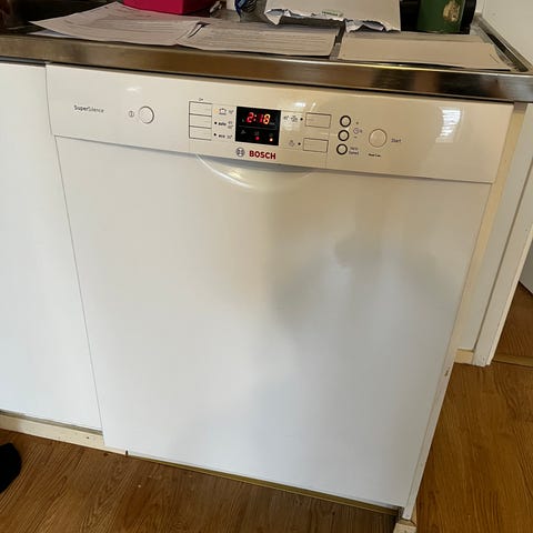 Annetaan astianpesukone, toimii, mutta takajalka jumissa. Ehdimme ostaa jo uuden. Korkeus jalkojen kanssa 87,5 cm, leveys 60 cm, syvyys 58,5 cm