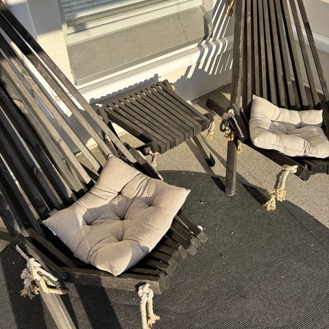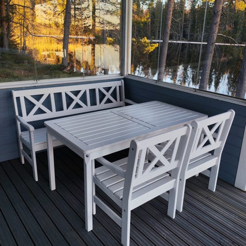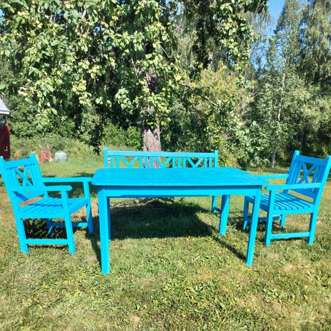 Myyntiin kaksi (2) Bondholmen puista tuolia sekä pöytä. Mittoja en nyt saa. Pehmusteet joutunee uusimaan, kalusteiden kunto hyvä. Jämäkkää tekoa. Väri siniharmaa. Kuvan valkoinen tuoli kuvakaappaus Ikean sivuilta.