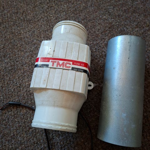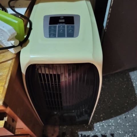 Ilmanviilennin. Takana vesisäiliö, voi laittaa jääpaloja yms.