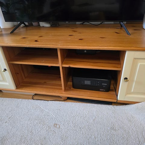 Tv-taso on elämää nähnyt mutta toimiva edelleen. Taso pitää sisällään kaksi erillistä osaa ja irtonaiset pohjajalat. Tarkempia mittoja saa kysymällä.