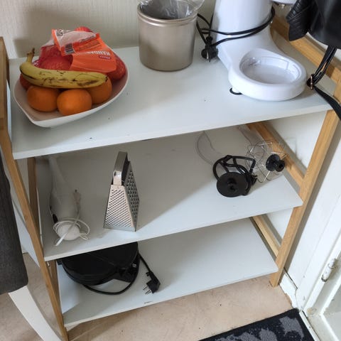 Puinen hyllykkö,korkeus 77cm x leveys 80cm ja syvyys,syvemmästä kohtaa 25cm.