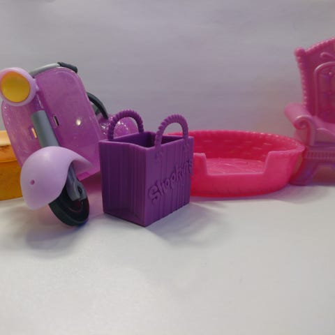Littlest Pet Shop leikkisetti, johon kuuluu pieni eläinhahmo sekä useita tarvikkeita. Setissä on mopo, jossa on tavarakori, sekä erilaisia ruokaan ja hoitoon liittyviä pieniä osia, kuten luu ja muita leikkitarvikkeita. Mukana on myös tynnyrin muotoinen sormus, jonka sisään eläinhahmo voidaan piilottaa. Soveltuu Littlest Pet Shop -hahmojen kanssa leikkimiseen ja mielikuvitusleikkeihin. Petsissä on pientä kulumaa.